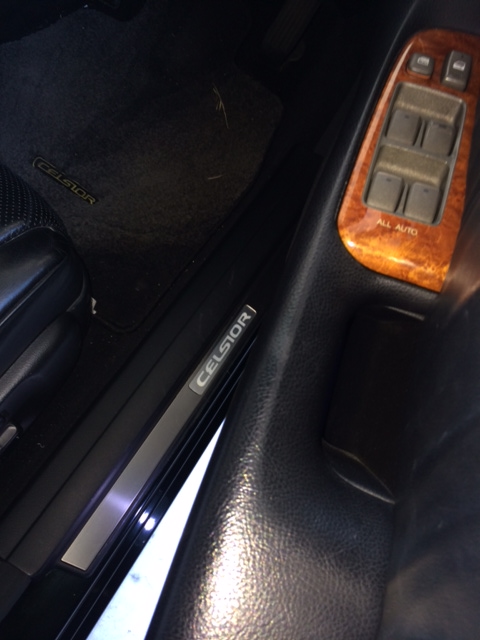 スカッフプレートを外し、100V→12Vの変圧器にかけてみると、光ります。