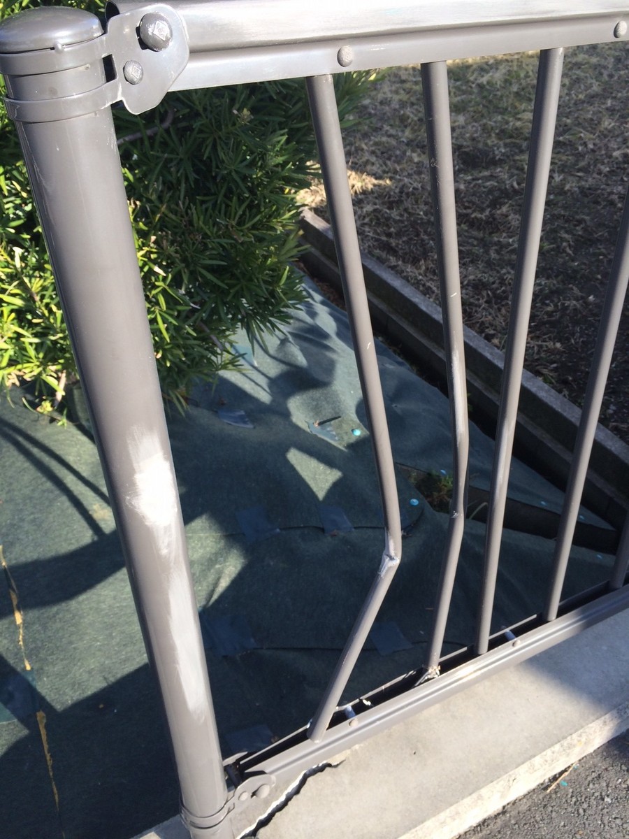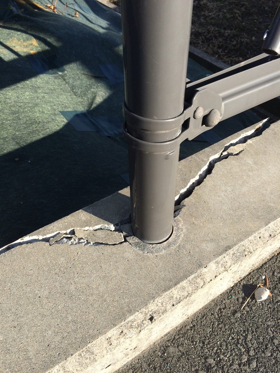 弊社お客様のトレーラーが、後退で道路わきの建設現場に進入しようとしたところで、画像の柵に接触しました。