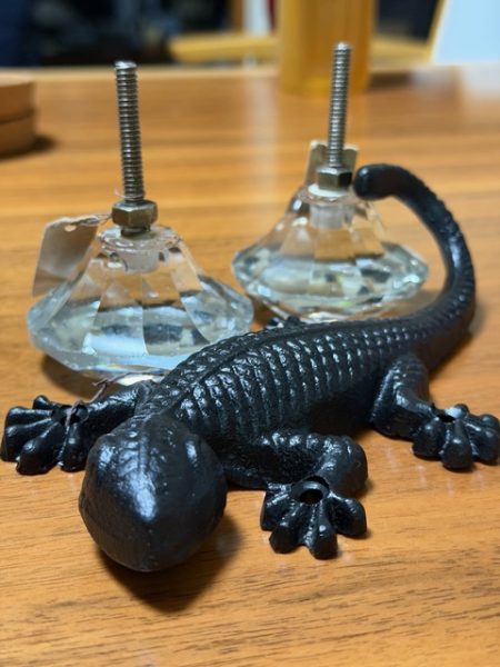 奥に写っている透明なやつは、もう一つの文鎮候補です(笑)