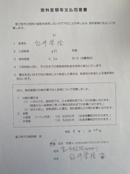 とはいえ、個室使用料は5,500円(1日)が全額自己負担となります。